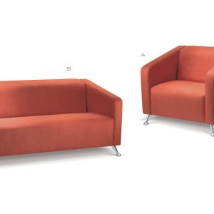 FEATURES Upholstered in vulcan fabric Chrome legs